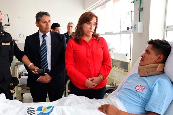 Dina Boluarte visita policías heridos en violentas protestas