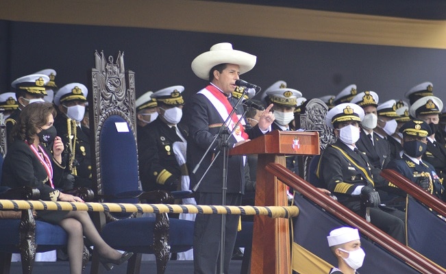 Durante la ceremonia por el bicentenario de la Marina de Guerra del Perú (MGP) y el 142 aniversario del glorioso Combate Naval de Angamos, el presidente Pedro Castillo aseguró que su gobierno está abocado a construir un país más justo y equitativo, “con mejor economía, con hombres y mujeres con mayores oportunidades, y con un sistema de salud fortalecido, donde no falten las vacunas contra la covid-19”, manifestó, al tiempo de resaltar el rol social de la MPG en favor de la población más vulnerable.