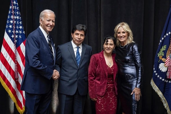 «Fue muy grato reencontrarnos Joe Biden», escribió Castillo en su cuenta oficial de Twitter, donde publicó una fotografía junto a su esposa, Lilia Paredes; Biden y la primera dama de Estados Unidos, Jill Biden.