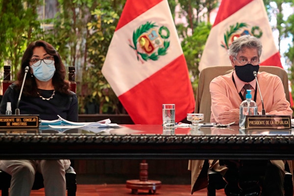 El presidente de la República, Francisco Sagasti, y la jefa del Gabinete Ministerial, Violeta Bermúdez, lideran la sesión del Consejo de Ministros, en la que se evalúan los avances en la lucha contra el coronavirus (covid-19) y las nuevas medidas para afrontar la emergencia sanitaria.