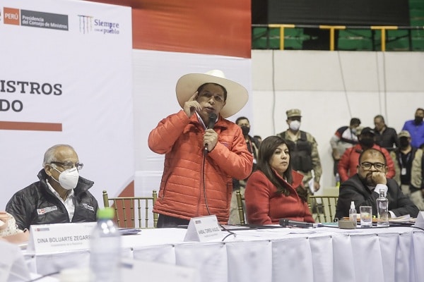El presidente de la República, Pedro Castillo, acudió este miércoles a la ciudad de Juliaca, para sostener un encuentro organizaciones sociales, autoridades regionales y alcaldes, en el marco del Primer Encuentro por el Desarrollo de la Región Puno, en la Plaza de Armas de la referida ciudad.