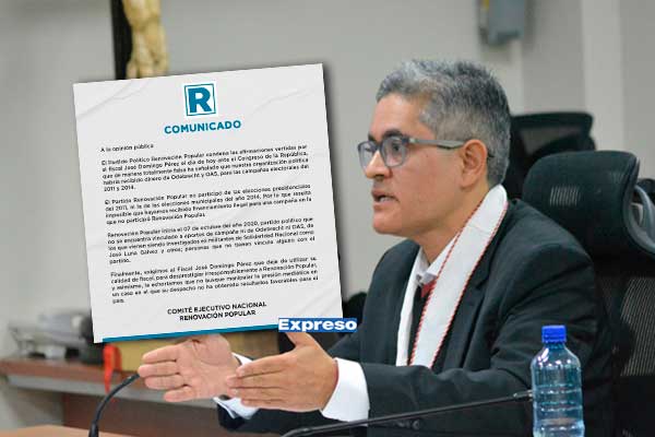 El partido Renovación Popular no participó de las elecciones presidenciales del 2011, ni de las elecciones municipales del año 2014. Por lo que resulta imposible que hayamos recibido financiamiento ilegal para una campaña en la que no participó Renovación Popular”, sostuvo la organización en un comunicado difundido horas después de la sesión.