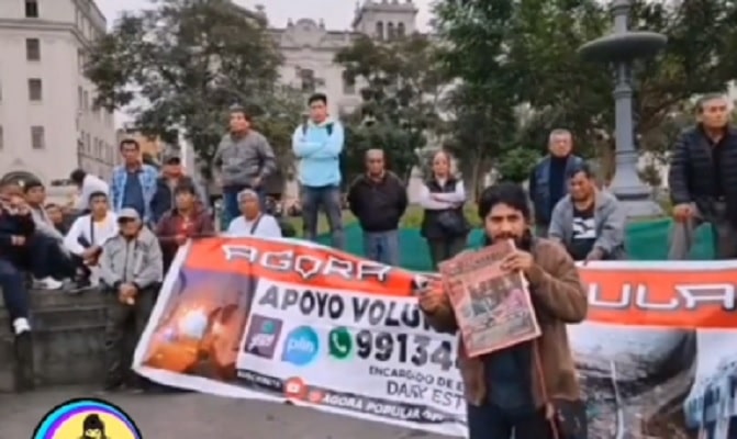 "Si gritas Dina asesina te regalo el periódico Pachacútec...", reza una pancarta en plena Plaza San Martín, donde promotores de la 'Tercera Toma de Lima' amenazan con capturar el Congreso de la República, con la llegada de unos 5 mil manifestantes procedentes del sur del país, como Puno, Ayacucho y Arequipa.
