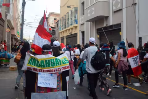 Imagen Actualidad 20 Ene 2023 - 15:00 Protestas en Lima: «pacíficos» manifestantes piden la cabeza de Dina Boluarte Andahuaylinos, paisanos de la presidenta, tomaron la ciudad con violencia un día más. Imagen Actualidad 19 Ene 2023 - 12:50 Andahuaylas: más de 100 licenciados del Ejército se dirigen a Lima [VIDEO] Planean sumarse a las protestas en la capital. Imagen Actualidad 16 Dic 2022 - 12:18 Andahuaylas: atacan comisaría con material explosivo Atentado contra sede de la PNP ha dejado varios efectivos heridos. Imagen Actualidad 12 Dic 2022 - 16:39 Pobladora de Apurímac pide entre lágrimas que manden al Ejército: Manifestantes son terroristas Ciudadana oriunda de Andahuaylas solicita a la presidenta Dina Boluarte intervención de las Fuerzas Armadas. Cargar más