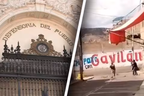 Imagen Actualidad 11 Dic 2022 - 14:21 Andahuaylas: Defensoría lamenta primera muerte en protestas a favor de Castillo El ente defensor solicitó el cese a la violencia en Apurímac. Imagen Actualidad 8 Dic 2022 - 14:43 Nombramiento docente 2022: Defensoría solicita suspender concurso por falta de garantías Tras renuncia de Rosendo Serna al Minedu. Actualmente la cartera no tiene una persona al mando. Imagen Política 7 Dic 2022 - 13:30 Defensoría del Pueblo solicita a Fiscalía iniciar acciones penales contra Castillo Precisaron que detención del golpista sigue los procedimientos de ley. Imagen Política 6 Dic 2022 - 16:50 Defensoría pide que se investiguen las denuncias del exjefe de la DINI con «máxima celeridad» El exjefe de la DINI reveló actos ilícitos en el Ejecutivo y cómo el presidente Pedro Castillo ordenó encubrir la fuga de Juan Silva y Fray Vásquez. Cargar más