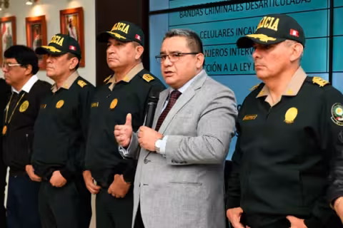 Imagen Política 23 Jun 2024 - 10:57 Ministro del Interior aplica toda su artillería para desarticular a la Diviac Juan José Santiváñez criticó que, pese a gran presupuesto, no exista resultado alguno. Shirley De la Cruz