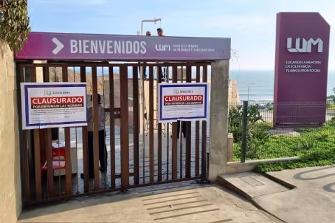 Imagen Actualidad 28 Abr 2023 - 08:15 LUM reabre sus puertas este sábado tras ser clausurado por infringir normas Así lo anunció el Ministerio de Cultura. Imagen Actualidad 18 Abr 2023 - 06:47 Carlos Canales, alcalde de Miraflores, anuncia que Lugar de la Memoria reabrirá sus puertas Tras clausura por no contar con certificados de seguridad. Imagen Política 2 Abr 2023 - 11:28 Ministra de Cultura sobre el LUM: «En los próximos días se podría realizar la reapertura» Leslie Urteaga indicó que están trabajando con la documentación. Cargar más