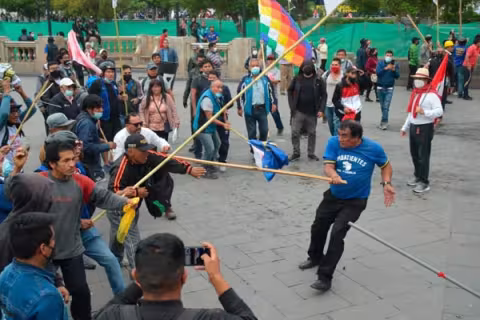 Imagen Actualidad 14 May 2022 - 13:00 Se registraron enfrentamientos en protestas a favor y contra Castillo Manifestantes se golpearon con palos y banderas en plaza San Martín.