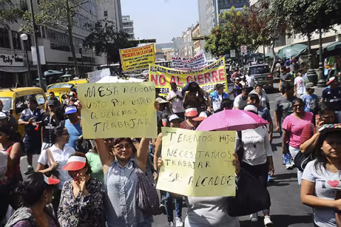 Actualidad 13 Nov 2023 - 18:10 Rafael López Aliaga confirma plan 'Navidad Segura' y comerciantes piden reubicar a ambulantes Más de mil agentes resguardarán las calles. Imagen Actualidad 17 May 2023 - 01:00 Reubicarán a más de 3 mil comerciantes ambulantes Municipalidad de Lima los agrupa por giros comerciales y les asignará lugares seguros en el Cercado para que puedan ofrecer sus productos. Imagen Actualidad 15 May 2023 - 03:06 Unos mil policías resguardan accesos al Mercado Central y Mesa Redonda Ejecutan control de identidad para detener a personas con requisitorias vigentes y se pedirá documentos a ciudadanos extranjeros. Imagen Actualidad 14 May 2023 - 15:06 Mercado Central y Mesa Redonda serán «zona restringida» desde este lunes Comercio ambulatorio y estacionamiento de vehículos serán prohibidos. Imagen Actualidad 14 May 2023 - 03:05 Municipalidad de Lima declara zona rígida perímetro de Mesa Redonda y Mercado Central Decreto de Alcaldía establece sanción para comerciantes informales que incumplan medida. Actualidad 10 Dic 2021 - 11:17 Carné de vacunación: se reportan aglomeraciones en exteriores de mercados y galerías [FOTOS] Vigilantes revisaron de manera minuciosa los certificados, tanto físicos y virtuales. Imagen Actualidad 2 Mar 2021 - 03:29 Refuerzan seguridad y control en emporios Serán resguardados por más de 180 policías, 55 miembros de las Fuerzas Armadas y 500 agentes municipales de Lima. Imagen Actualidad 7 Dic 2020 - 06:04 Ambulantes fueron desalojados de Mesa Redonda, Mercado Central y Triángulo Grau Han sido desalojados los ambulantes que perjudicaban a los trabajadores formales. Imagen Actualidad 4 Sep 2020 - 12:35 Bulevar y ciclovía del Callao tendrán nuevos rostros Municipalidad Provincial del Callao ejecuta recuperación de varias obras públicas con todos los protocolos de bioseguridad contra la Covid-19. Imagen Actualidad 1 May 2019 - 01:30 Mesa Redonda: Comerciantes piden instalar mesa técnica Manifestantes proponen al presidente del Congreso, Daniel Salaverry, como intermediario. Imagen Actualidad 21 Mar 2019 - 01:20 Municipalidad de Lima retira a ambulantes de Mesa Redonda Inspectores intervienen en los jirones Cusco, Ayacucho, Andahuaylas y Paruro, así como en las avenidas Nicolás de Piérola y Abancay. Cargar más PUBLICIDAD