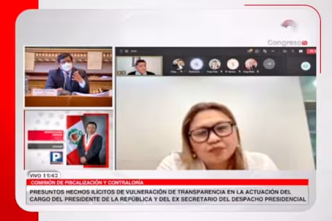 Imagen Política 16 Feb 2022 - 02:40 Karelim López: Comisión de Fiscalización evaluará si empresaria pasa a condición de investigada Debido a su negativa de responder las interrogantes del grupo de trabajo parlamentario. Imagen Política 6 Feb 2022 - 01:17 Limpian a Castillo de sus reuniones en Breña Según informe no se violó la ley, porque el Presidente dijo que esos encuentros no eran oficiales, pero hay puntos oscuros.