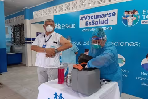 En este punto de la selva peruana, 478 médicos, enfermeras y personal técnico, continuarán siendo inmunizados hoy en las instalaciones del Colegio "Mariscal Oscar R. Benavides".