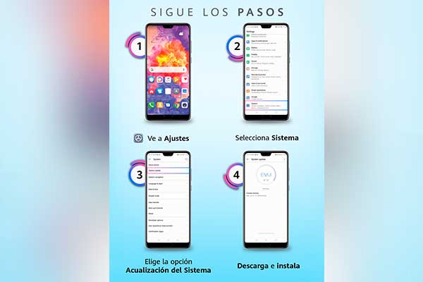 Si aún no actualiza su teléfono a EMUI 9.0, las instrucciones están disponibles en su dispositivo siguiendo el menú (Configuración ---> Sistema ---> Actualización de software). Alternativamente, también puede darse de alta para la actualización de EMUI a través de HiCare (tenga en cuenta que la actualización a través de HiCare sólo está disponible en ciertos países y regiones).