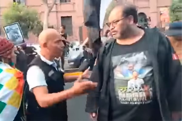 "El señor (y su grupo) se ha querido adueñar de la manifestación", relató una persona que grababa la movilización. Remarcó que existieron infiltrados y hasta un grupo de religiosos 'manipulados': "Ah ya, tenía que llevar la cruz".